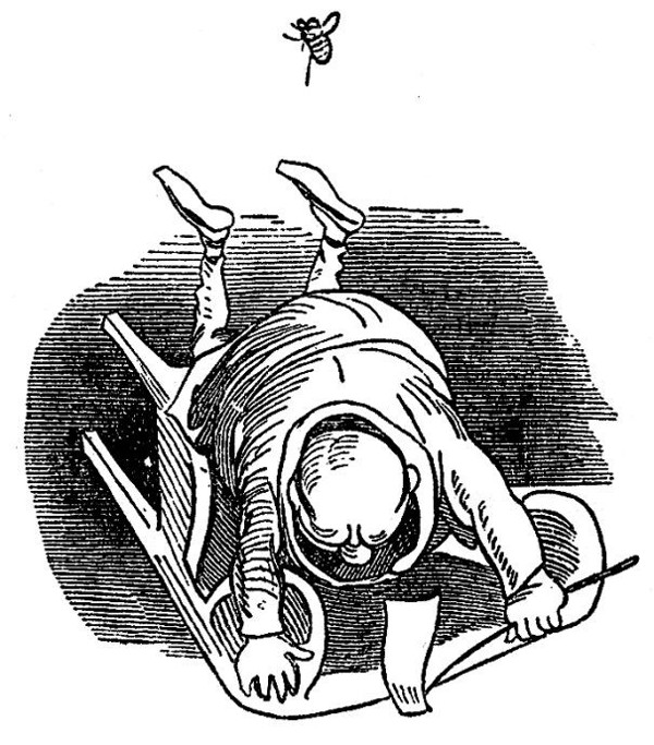 Und surrt ihm vor dem Ohr herum.