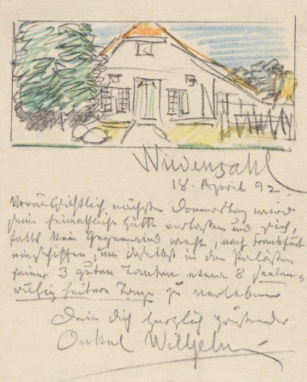 Voraussichtlich nächsten Donnerstag wird seine heimathliche Hütte verlaßen und sich, falls kein Gegenwind weht, nach Frankfurt einschiffen, um daselbst in den Palästen seiner 3 guten Tanten etwa 8 seelenruhig heitere Tage zu verleben