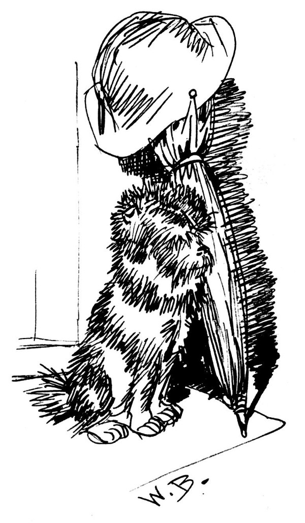 Hält Schnauz bei Hut und Schirm die Wacht.