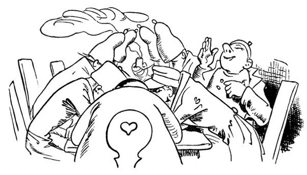 Da sitzen, eng vereint und bieder,