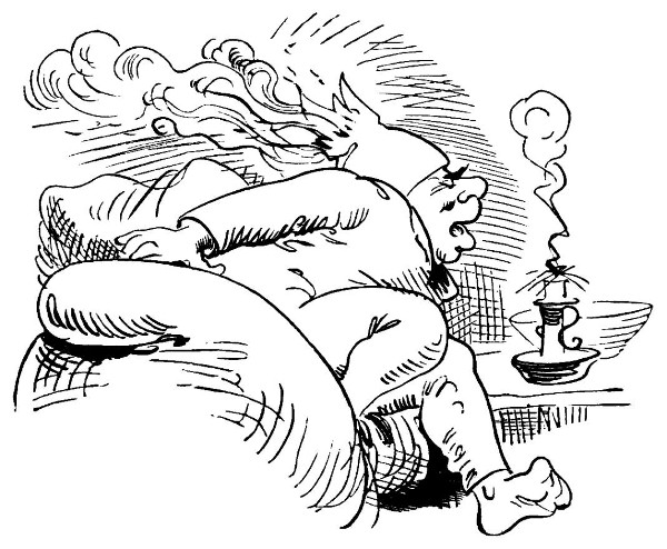 Streckt sich auf weichem Kanapee,