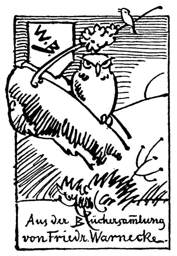 [...] Gegen die ... erwähnte Benützung eines von mir für Geheimrat Warnecke gezeichneten Exlibris habe ich nichts einzuwenden. [...]