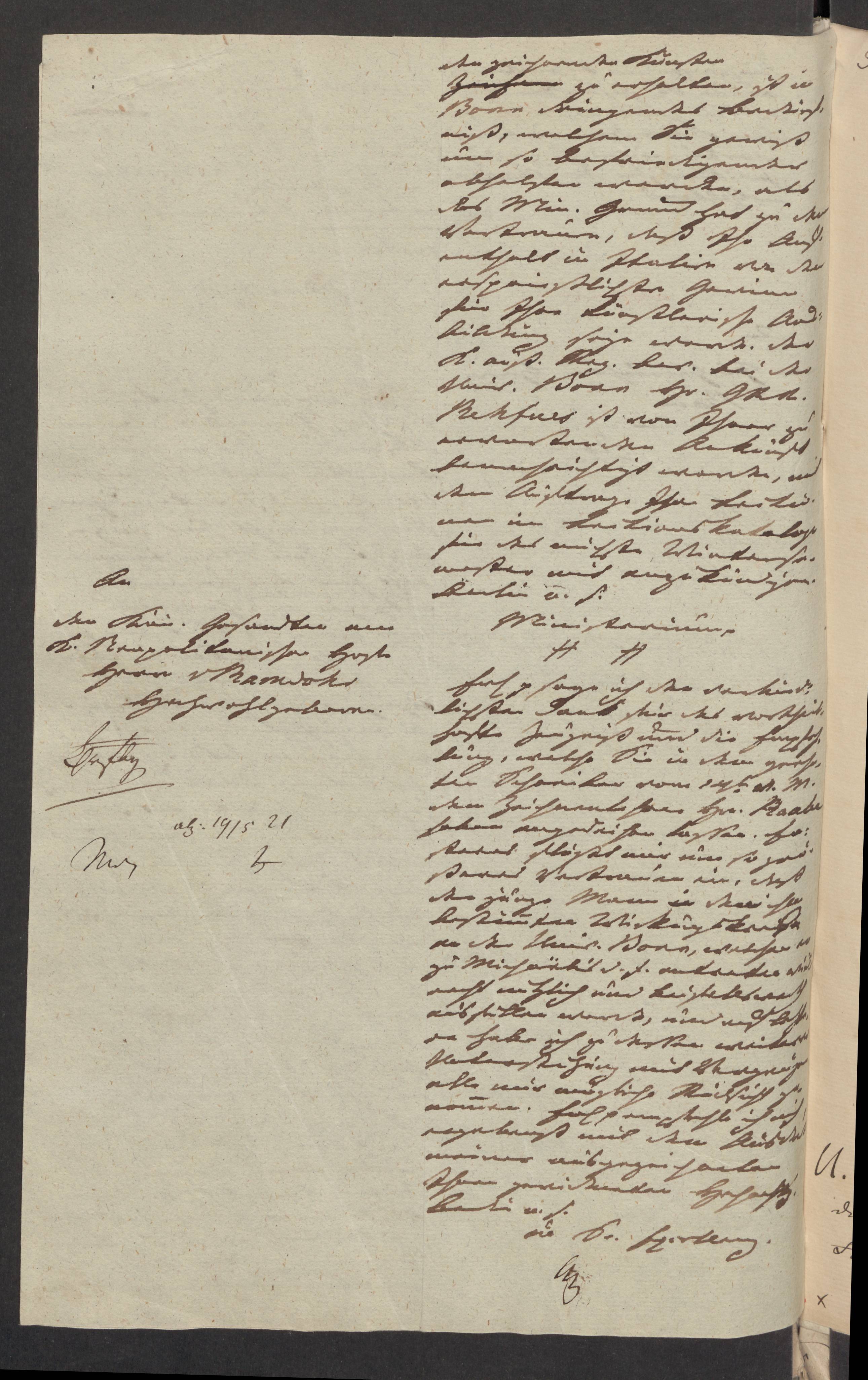 15. Mai 1821. Kultusministerium an Raabe (Konzept).