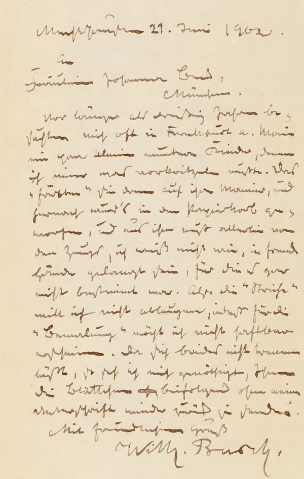 Vor länger als dreißig Jahren besuchten mich oft in Frankfurt am Main ein paar kleine muntere Nachbarkinder, denen ich immer was vorkritzeln mußte. Das "färbten" sie dann auf ihre Manier, und hernach wurd's in den Papierkorb geworfen, und aus ihm muß allerlei von dem Zeugs, ich weiß nicht wie, in fremde Hände gelangt sein, für die es gar nicht bestimmt war. Also die "Striche" will ich nicht ableugnen, indeß für die "Bemalung" möcht ich nicht haftbar erscheinen. Da sich beides nicht trennen läßt, so seh ich mich genöthigt, Ihnen die Blättchen beifolgend ohne meine Unterschrift wieder zurück zu senden.
