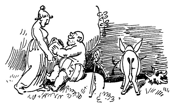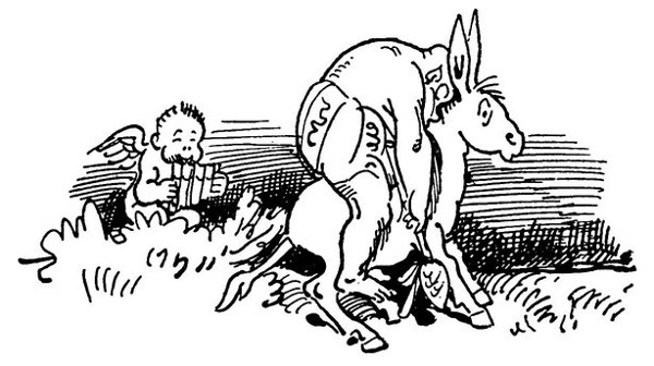 Aber der Esel erhebt äußerst bedenklich das Ohr.