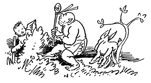 Fast vergißt er den Thyrsus, woran er sein Lebtag gewöhnt ist;