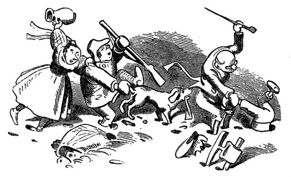 Die Tabakspfeife fliegt davon.