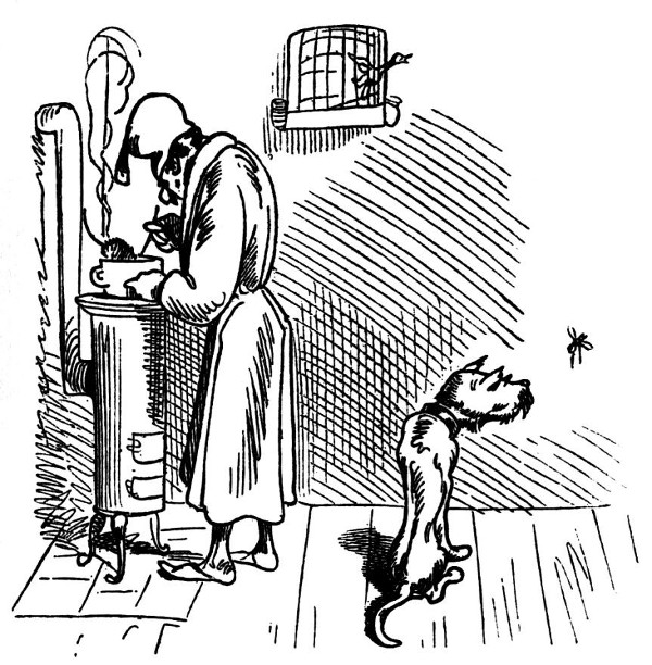 Monsieur Jacques bratet seinen Kanarienvogel.