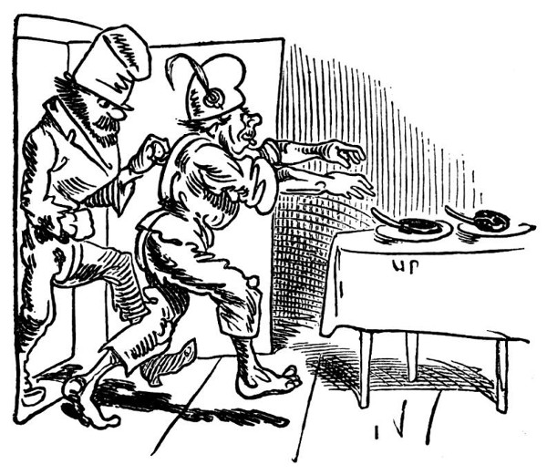 Statt der Preußen stürzen sich zwei hungrige Citoyens auf die geladenen Karbonaden.