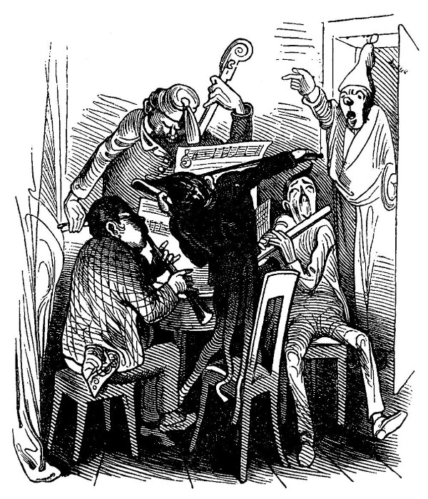 Ein grausamer Hauswirt. »Meine Herren! Das geht nicht, das leiden die andern Mitbewohner nicht: Quartette können Sie gern spielen, aber jeder seines allein, daß es – keinen solchen Lärm macht.«