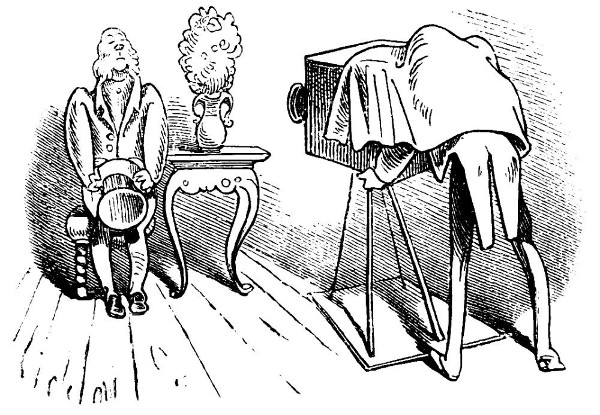 Der Photograph verfährt mit der äußersten Sorgfalt. Er hat die Position zu seiner Zufriedenheit geordnet.