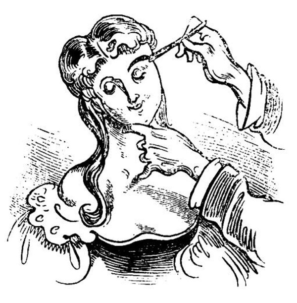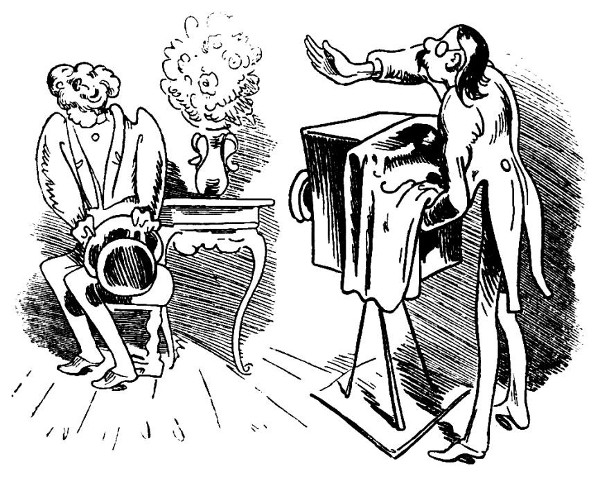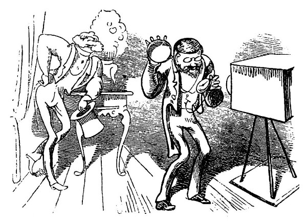 [177] Hier ist Fräulein Adele im Begriffe, für ihren Ferdinand sich abphotographieren zu lassen.