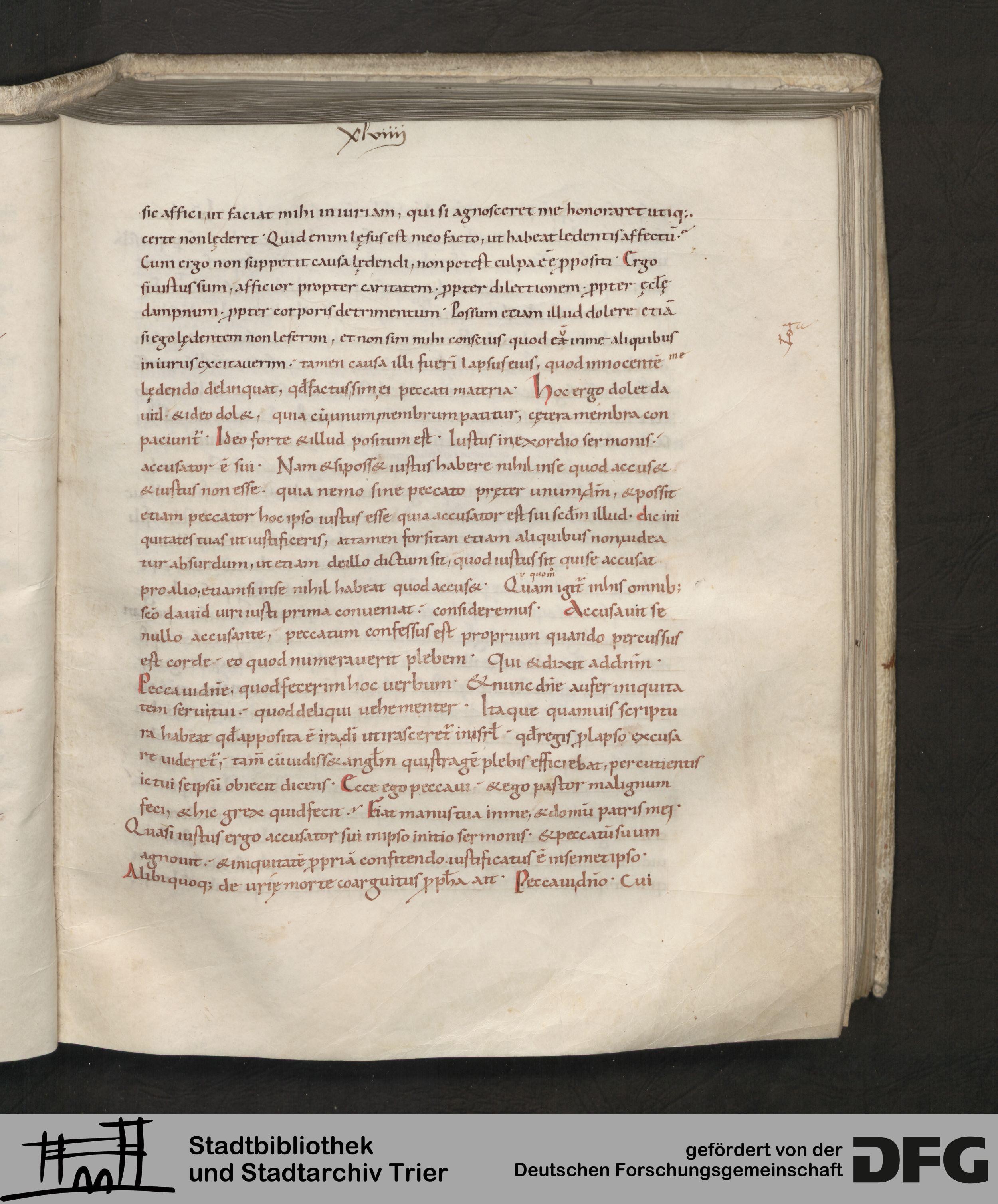 - TextGrid Repository (2017). Stadtbibliothek und Stadtarchiv Trier, Hs. 120/1170 4°: Sammelhandschrift. Inhalte. Stadtbibliothek und Stadtarchiv Trier Hs 120/1170 8°. Ambrosius: Expositio de psalmo. Blatt 49r. Blatt 49r. Virtuelles Skriptorium St. Matthias. Stadtbibliothek und Stadtarchiv Trier. https://hdl.handle.net/11378/0000-0007-E3F0-9