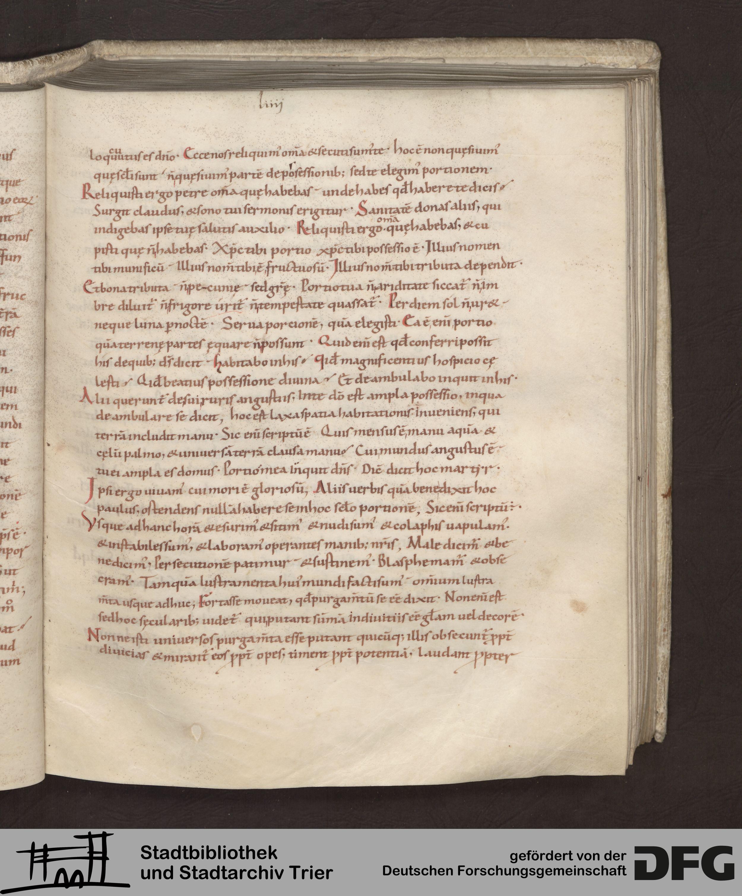 - TextGrid Repository (2017). Stadtbibliothek und Stadtarchiv Trier, Hs. 120/1170 4°: Sammelhandschrift. Inhalte. Stadtbibliothek und Stadtarchiv Trier Hs 120/1170 8°. Ambrosius: Expositio de psalmo. Blatt 54r. Blatt 54r. Virtuelles Skriptorium St. Matthias. Stadtbibliothek und Stadtarchiv Trier. https://hdl.handle.net/11378/0000-0007-E404-3