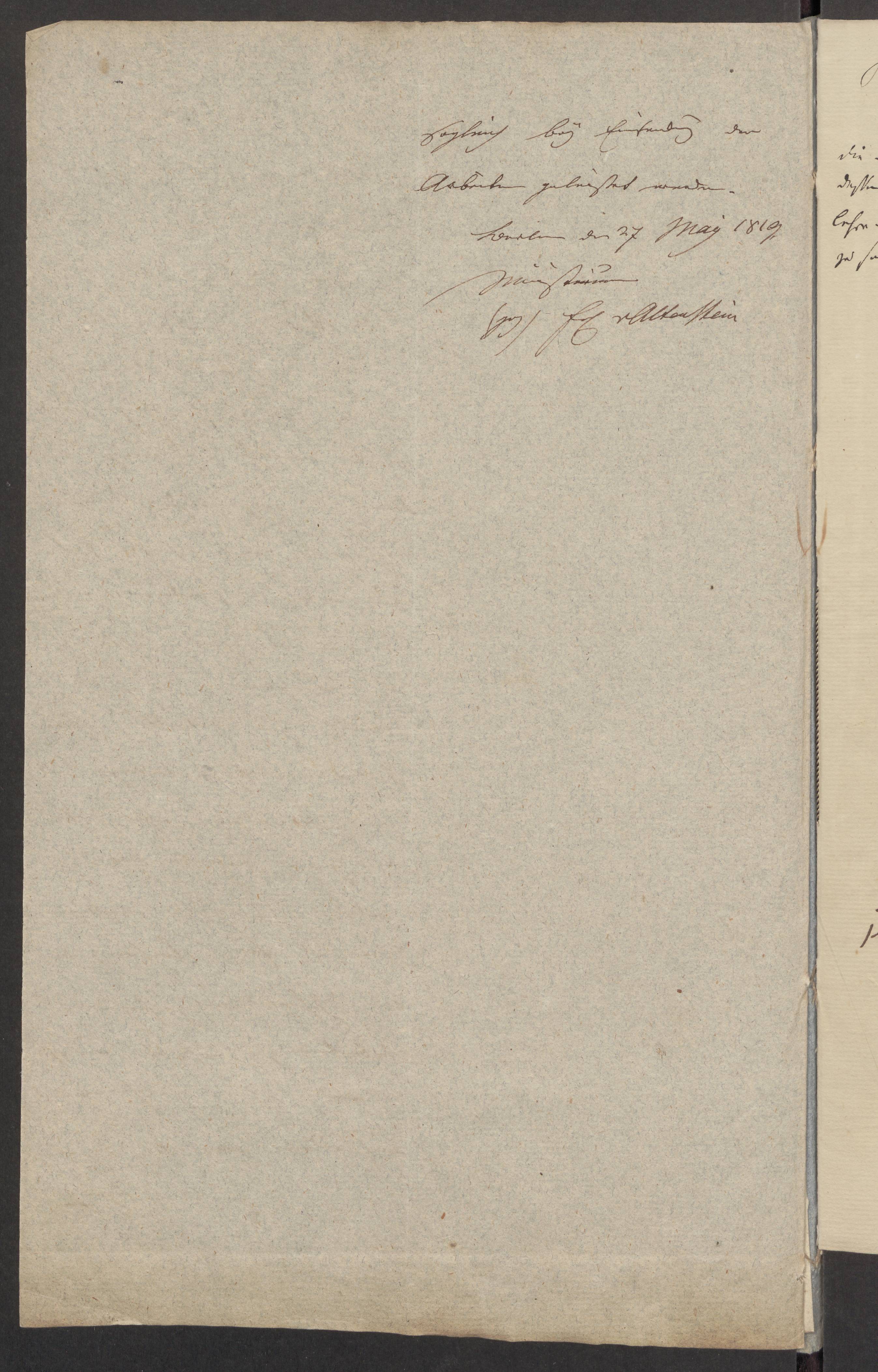 27. Mai 1819. Kultusministerium an Raabe (Konzept, Abschrift).